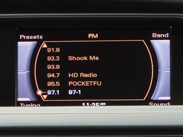 - Audi premium AM/FM/MP3 sound system -inc: single-CD player, aux input, SD card slot, speed dependent volume control, (10) speakers, 180 watt amplifier