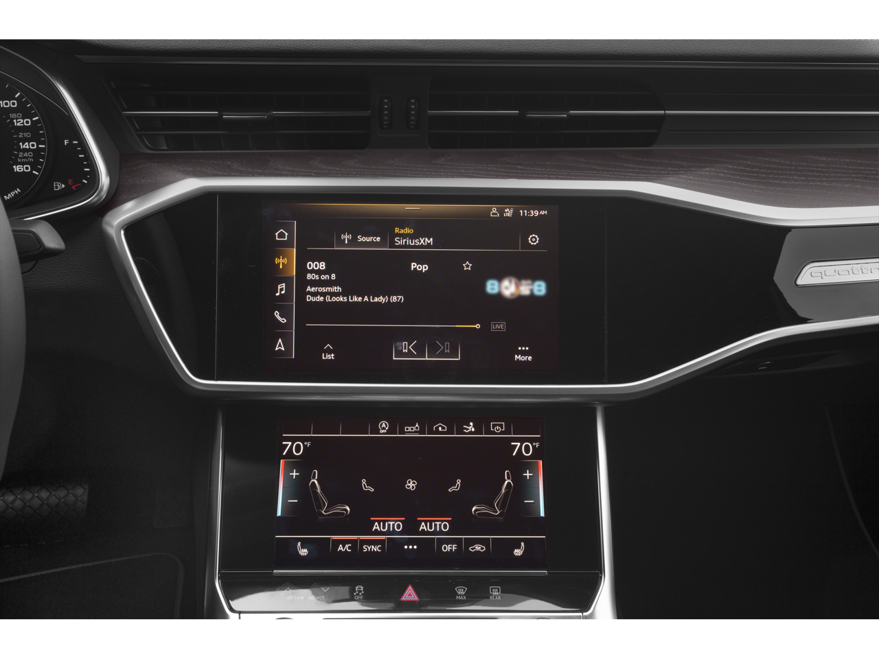 - Radio: Audi MMI Navigation Plus -inc: 10.1" upper and 8.6" lower MMI touch response w/dual-center displays and haptic feedback, traffic information online, Audi Connect CARE, PRIME & PLUS (limited time subscription), Audi sound system, Bluetooth® preparation for mobile phone, SIRIUS satellite radio (w/3-month complimentary subscription) and USB Audi music interface w/Audi smartphone interface (Android Auto and Apple CarPlay), Bang & Olufsen 3D Premium Sound System, 16 speakers