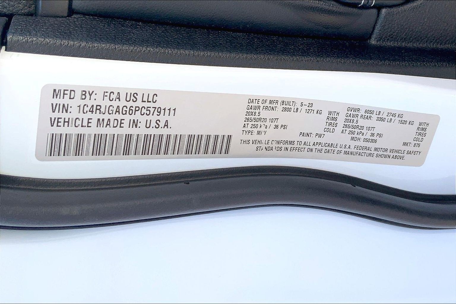- Rear Tire Size: P265/50SR20