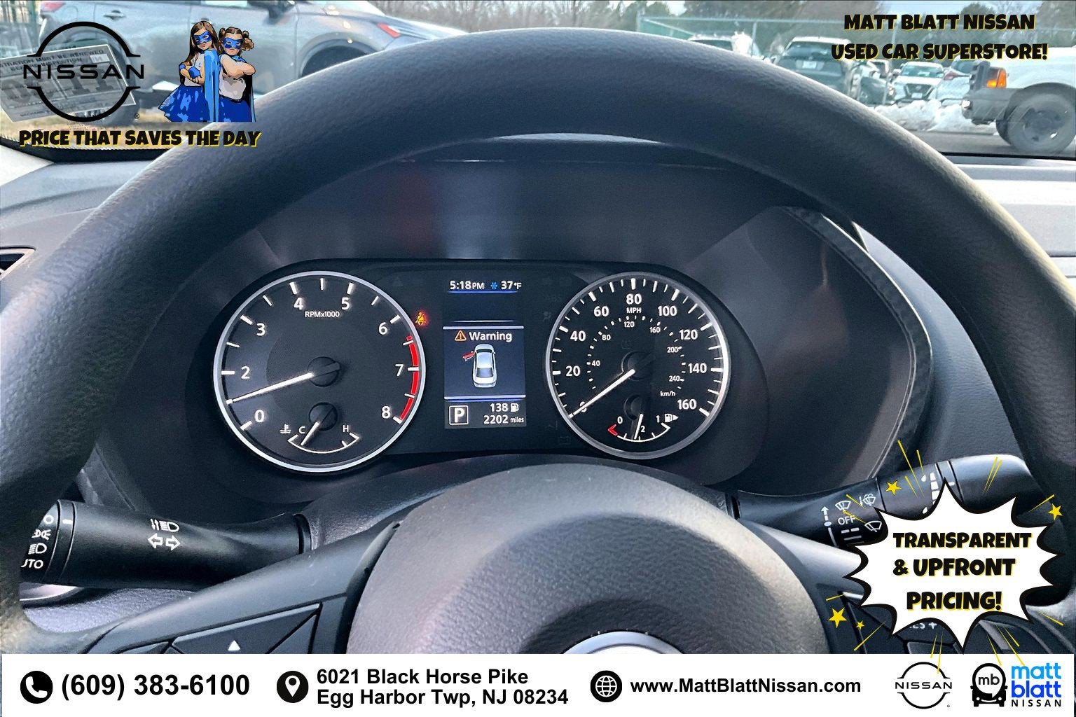 Matt Blatt has been serving New Jersey, Pennsylvania, Delaware, and New York for over 30 Years! Matt Blatt NISSAN is fully committed to maintaining a customer-first approach. Our team of professionals is dedicated to keeping the process quick and easy, putting YOU in control of the whole experience. We look forward to providing you with the finest vehicles and services! Buy with confidence knowing this vehicle has earned its place in our inventory by passing our rigorous multi-point inspection and reconditioning process by our 100% Certified Technicians and it is ready for many miles of reliability and comfort. TRANSPARENT & UPFRONT PRICING WITH NO HIDDEN FEES. We are constantly updating and strategically pricing our inventory to make sure you get a great price without having to be a great negotiator. Carfax is available free of charge on all of our vehicles.