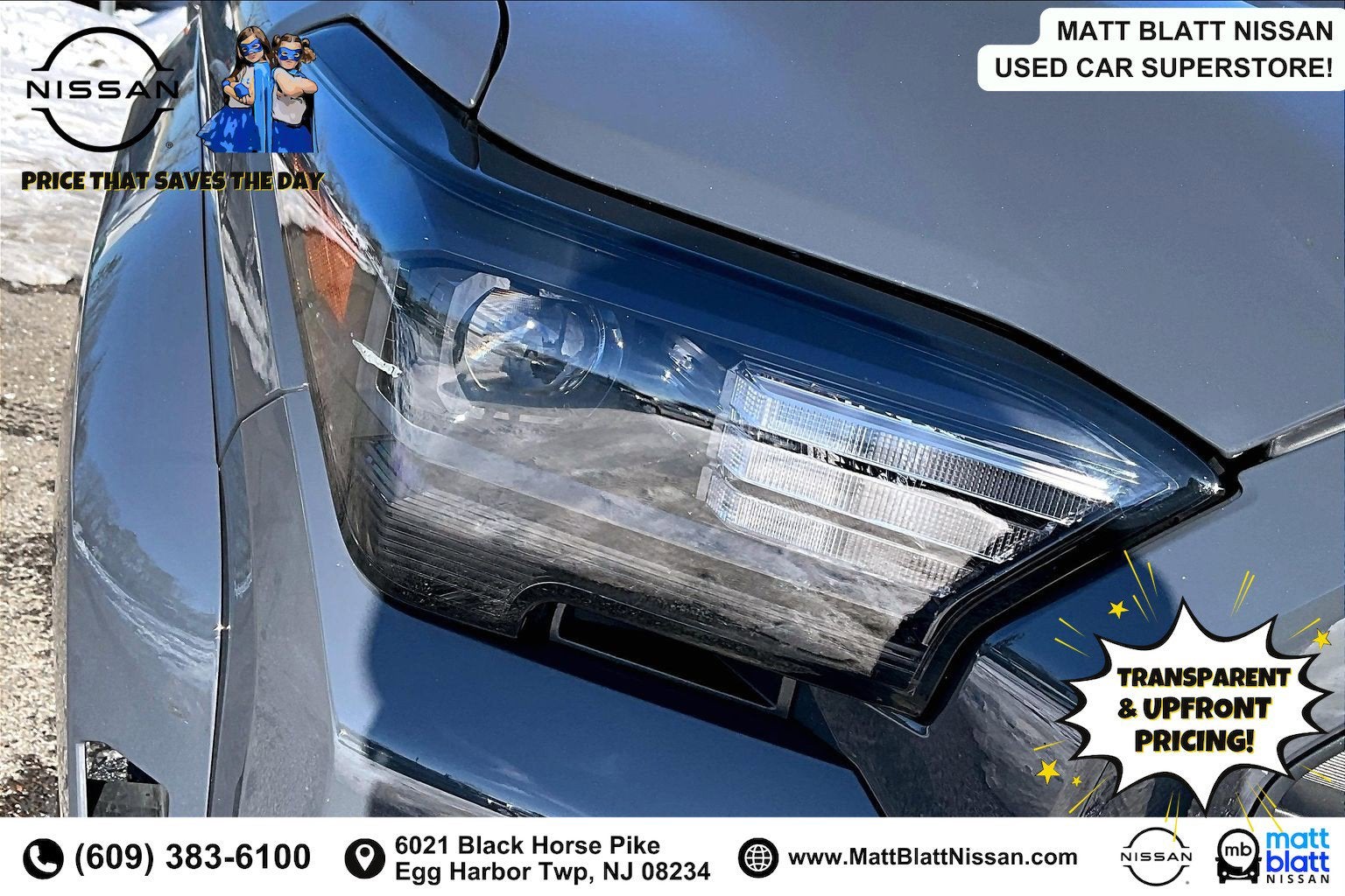 Matt Blatt has been serving New Jersey, Pennsylvania, Delaware, and New York for over 30 Years! Matt Blatt NISSAN is fully committed to maintaining a customer-first approach. Our team of professionals is dedicated to keeping the process quick and easy, putting YOU in control of the whole experience. We look forward to providing you with the finest vehicles and services! Buy with confidence knowing this vehicle has earned its place in our inventory by passing our rigorous multi-point inspection and reconditioning process by our 100% Certified Technicians and it is ready for many miles of reliability and comfort. TRANSPARENT & UPFRONT PRICING WITH NO HIDDEN FEES. We are constantly updating and strategically pricing our inventory to make sure you get a great price without having to be a great negotiator. Carfax is available free of charge on all of our vehicles.